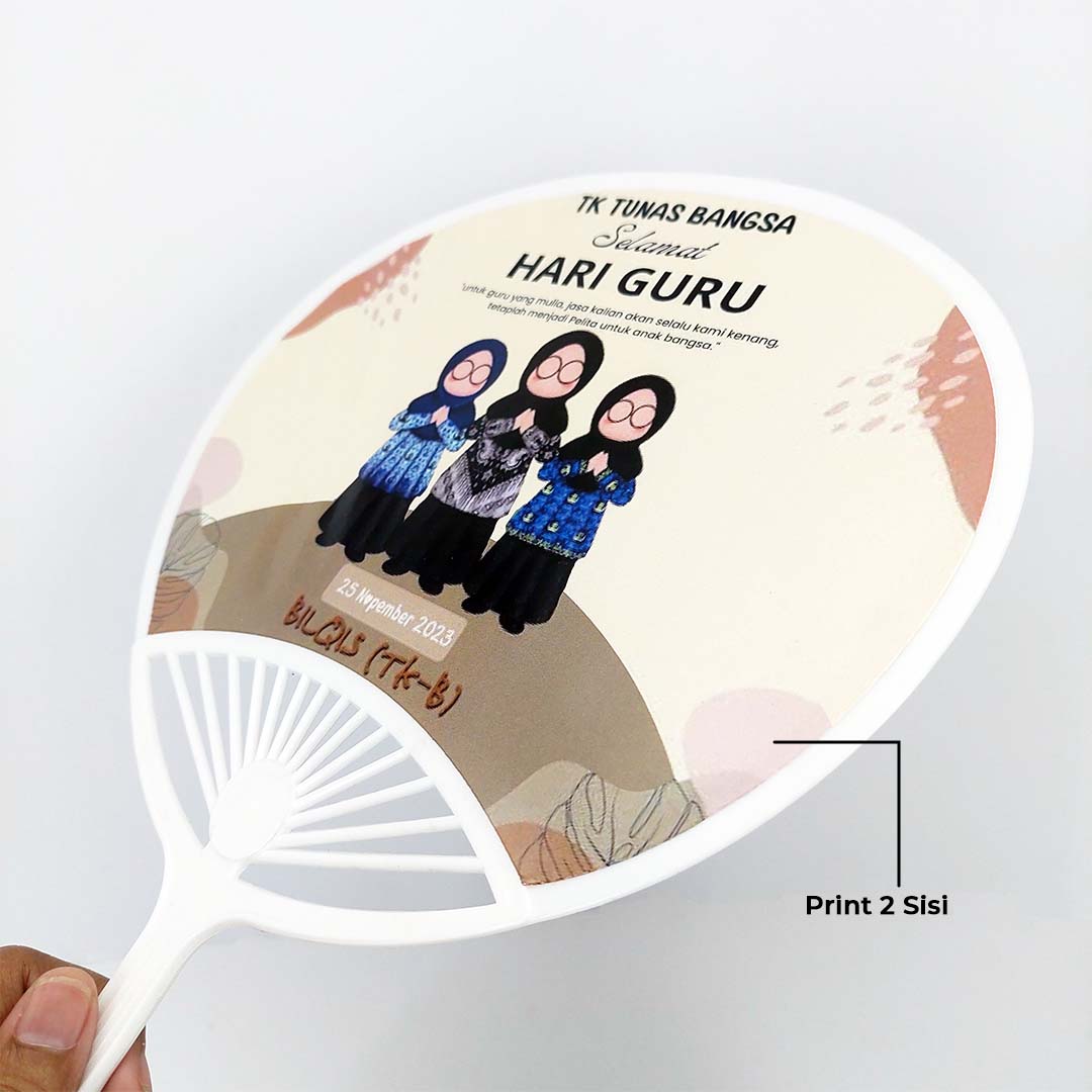 Kipas gambar custom Gagang Plastik Putih Cetak Dua Sisi